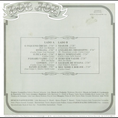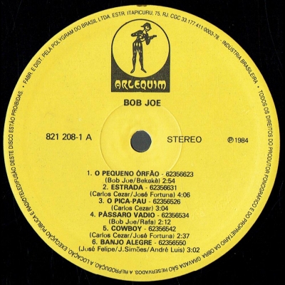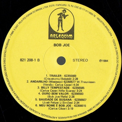 Músicas do álbum Bob Joe - 1984 (ARLEQUIM 8212081) - (1984)