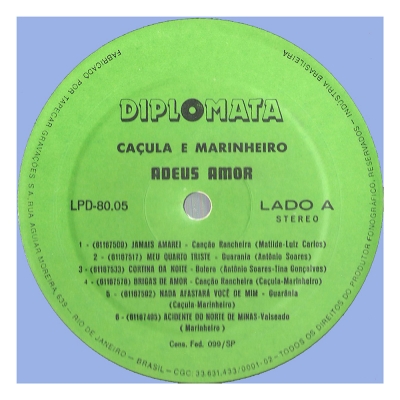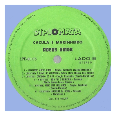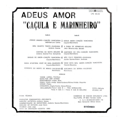 Adeus Amor (DIPLOMATA LPD 8005) - (1980) - Caçula e Marinheiro