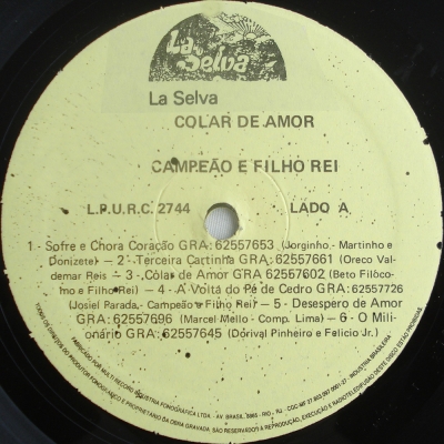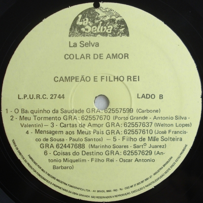 Músicas do álbum Colar De Amor (LPURC 2744) - (1984)