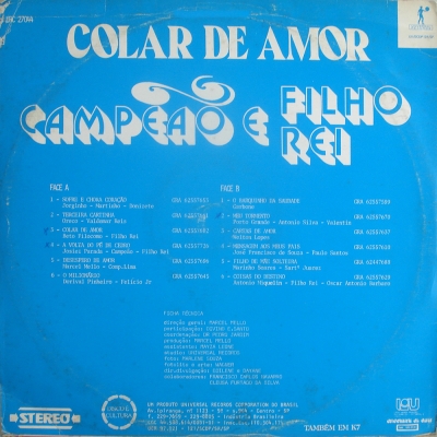 Colar De Amor (LPURC 2744) - (1984) - Campeão e Filho Rei