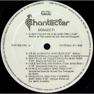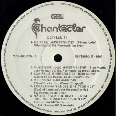 Músicas do álbum Donizeti (1992) (CHANTECLER 207405370) - (1992)
