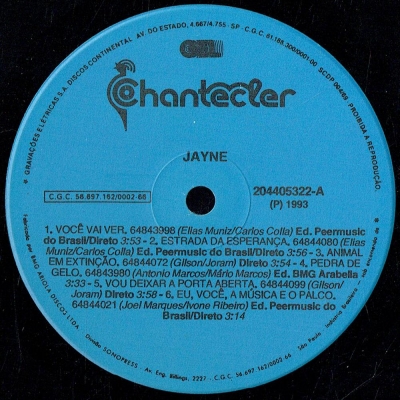 Músicas do álbum Jayne (1993) (CHANTECLER 204405322) - (1993)