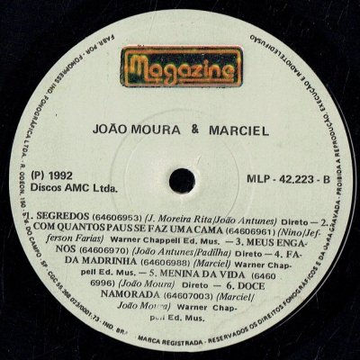 Músicas do álbum João Moura E Marciel (1992) (MAGAZINE MCLP 42223) - (1992)
