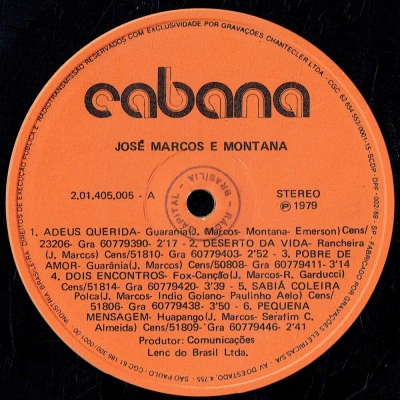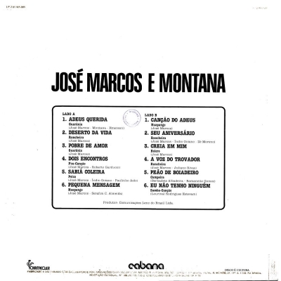 Músicas do álbum José Marcos e Montana (1979) (LENC-COPACABANA 204405005) - (1979)