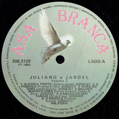 Músicas do álbum Juliano E Jardel (1980) (ASABRANCA RGE 3063129) - (1980)