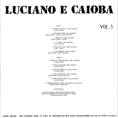 Músicas do álbum Luciano E Caiobá (1989) (Volume 5) (GILP 582) - (1989)