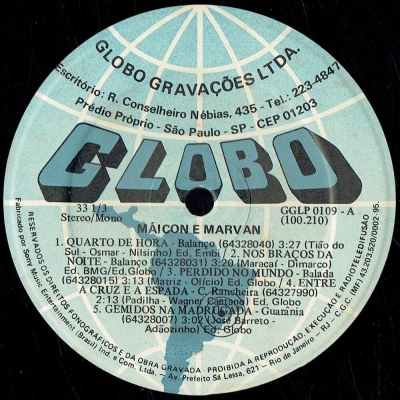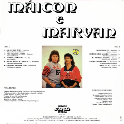 Músicas do álbum Maicon E Marvan (GGLP 100210) - (1991)
