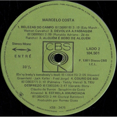 Marcelo Costa (1981) (CBS-ENTRE 104501) - (1981) - Marcelo Costa