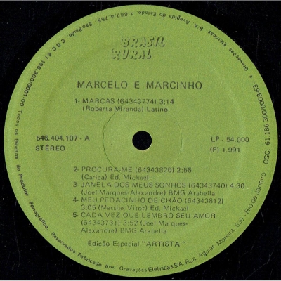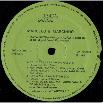 Músicas do álbum Marcelo E Marcinho (1991) (BRASILRURAL 54000) - (1991)