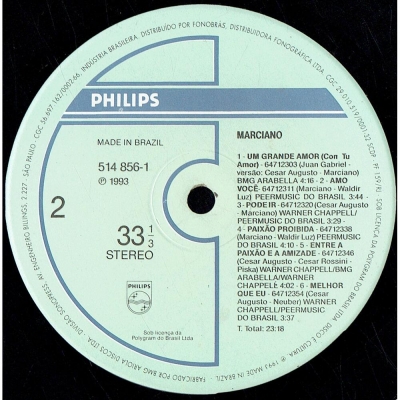 Músicas do álbum Marciano (1993) (PHILIPS 5148561) - (1993)