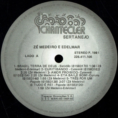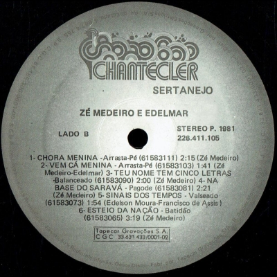 Músicas do álbum Zé Medeiro E Edelmar (1981) (CHANTECLER 226411105) - (1981)