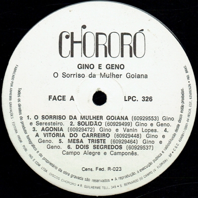 O Sorriso Da Mulher Goiana (CHORORO LPC 326) - (1979) - Gino e Geno