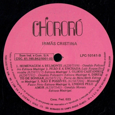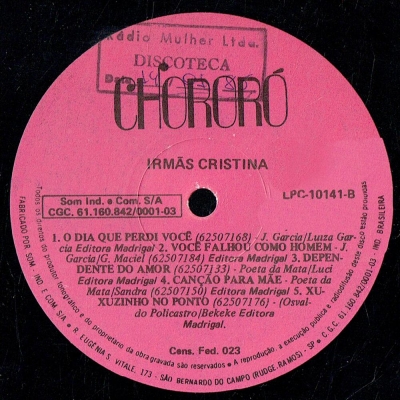 Músicas do álbum Irmãs Cristina (1984) (CHORORO LPC 10141) - (1984)