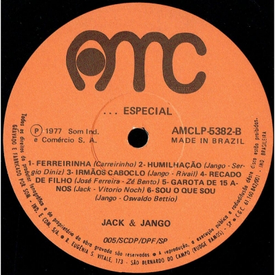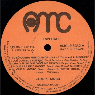 Especial (AMCLP 5382) (CARMONA LPC 1002) - (1974) - Jack e Jango