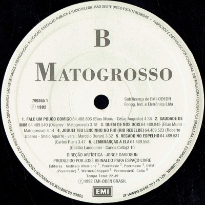 Músicas do álbum Matogrosso (1992) (EMI-ODEON 7993651) - (1992)