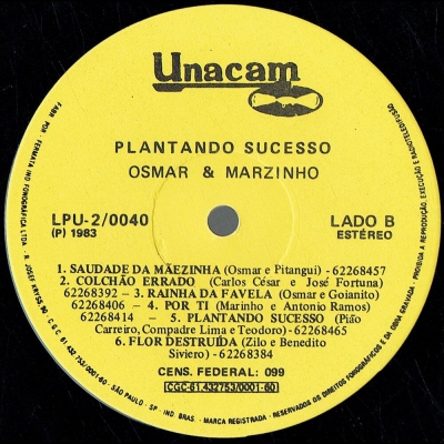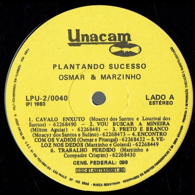 Plantando Sucessos (UNACAM 20040) - (1983) - Osmar e Marzinho