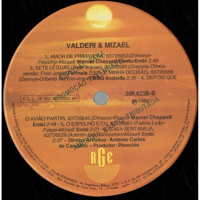 Músicas do álbum Valderi E Mizael (1990) (RGE 3086228) - (1990)