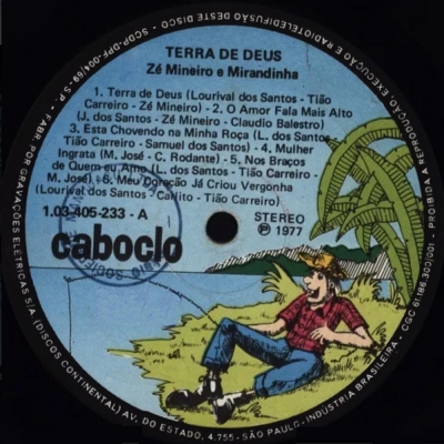 Terra De Deus (CABOCLO-CONTINENTAL 103405233) - (1977) - Zé Mineiro e Mirandinha
